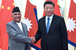 國家主席習近平10月13日在加德滿都同尼泊爾總理奧利會談。