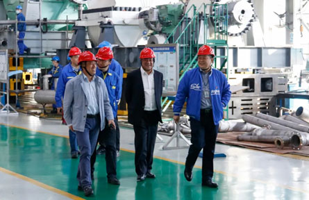 10月25日,萬華化學集團股份有限公司高級副總裁劉博學、物資部總經理錢兆剛來到沈鼓集團走訪交流,集團黨委書記、董事長戴繼雙,副總經理單瑋參加接待。