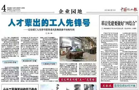 6月18日,《中國化工報》報道了全國工人先鋒號獲得者——沈鼓集團結構車間事跡。