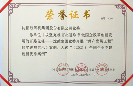 沈鼓集團榮登“2021年全國企業黨建創新優秀案例”榜單