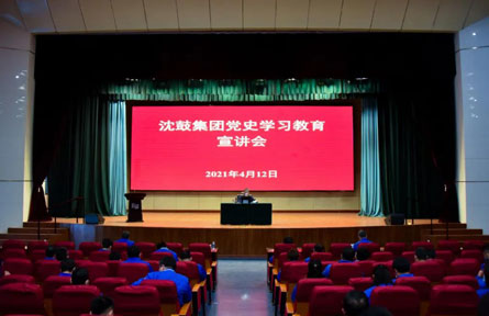 4月12日下午,沈鼓集團在主樓多功能廳舉辦黨史學習教育宣講會,集團領導、全體中層干部、黨務干事及黨外積極分子約300人參加會議。
