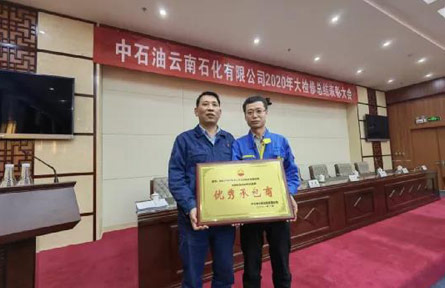 近日,在中石油云南石化有限公司2020大檢修總結表彰大會上,沈鼓集團安檢公司被授予優秀承包商,安檢公司員工趙洪波同志被授予大檢修先進個人稱號。