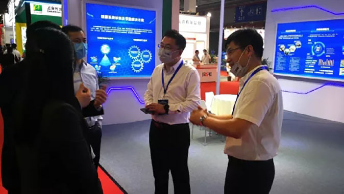 工作人員向參觀展會的中外朋友和專業人士介紹沈鼓集團發展歷程和沈鼓品牌