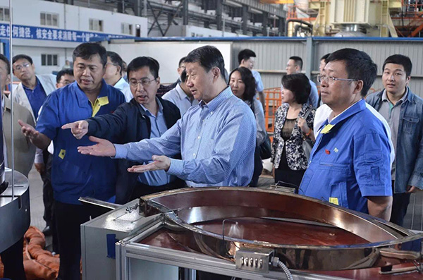 9月19日,國家電投董事長王炳華一行來到沈鼓集團,現場考察了主泵加工、試驗等工作。集團董事長戴繼雙、黨委書記孔躍龍、副總經理于洪昌陪同考察。