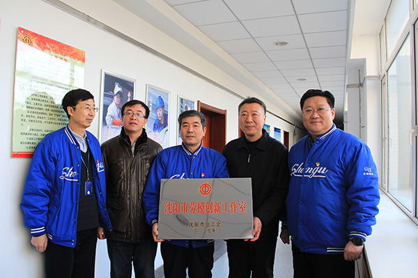 日前,李喜濤勞模創(chuàng)新工作室被授予市級(jí)勞模創(chuàng)新工作室。沈陽(yáng)市總工會(huì)副主席曹洪為李喜濤勞模創(chuàng)新工作室揭牌。集團(tuán)工會(huì)主席王鐵夫、集團(tuán)人力資源總監(jiān)王磊陪同。