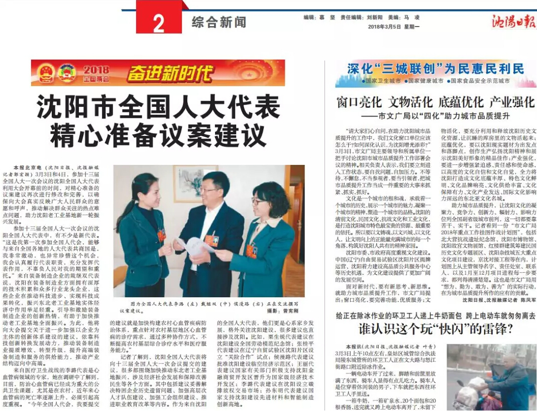 據《沈陽日報》3月5日消息 參加十三屆全國人大一次會議的沈陽全國人大代表中,有不少是新代表。”這是我第一次參加全國人代會,能夠與來自全國各地的人大代表共商國是,我非常激動,也異常珍惜這個機會,我會認真履行代表職責,充分發揮代表作用,不辜負人民對我的期望和重托。”來自裝備制造企業的戴繼雙代表說,沈陽在裝備制造業方面擁有深厚的技術積累和眾多行業龍頭企業,這些企業在推動科技進步、實現科技成果轉化,振興東北老工業基地實體經濟中作用舉足輕重。引導和激勵裝備制造企業的創新熱情,有助于加快推動老工業基地全面振興。為此,他將向大會提交關于進一步加強以企業為主體的創新體系建設的建議,依靠科技創新轉換發展動力,推動裝備制造業提質增效、轉型升級,提升高端裝備制造和服務的供給能力,推動產業結構邁向中高端。