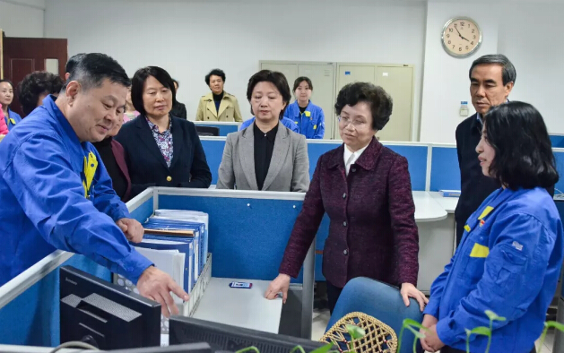 隨后,宋秀巖一行來到透平設計院,與女職工代表進行親切交談,調研優秀女性典型、女職工崗位建功情況和企業女職工委員會發揮的作用情況。在得知沈鼓女職工在一大批重大技術裝備研發設計和加工制造環節發揮著重要作用,并涌現出”五朵金花”、姜妍等一批先進集體和先進典型時,宋秀巖十分高興,連連稱贊沈鼓女職工”真棒”!