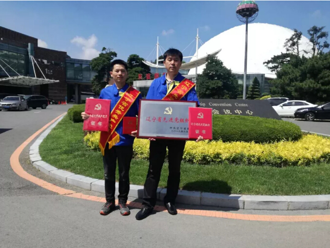 定子車間黨總支被授予遼寧省先進黨組織,車間黨總支書記梁辰(右)代表車間領獎。轉子車間數控車工馬長(左)好被授予遼寧省優秀共產黨員。