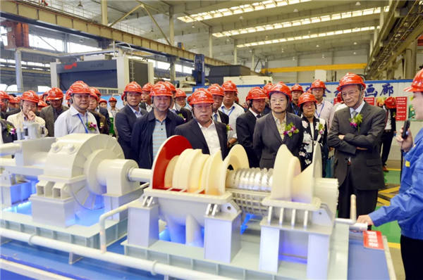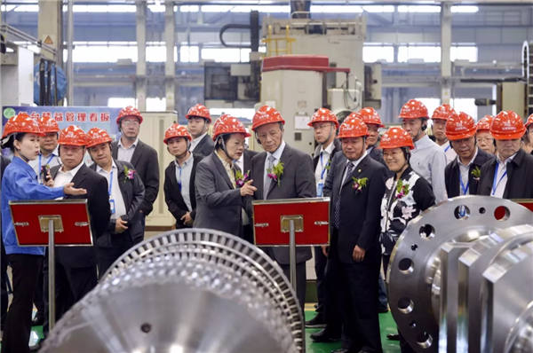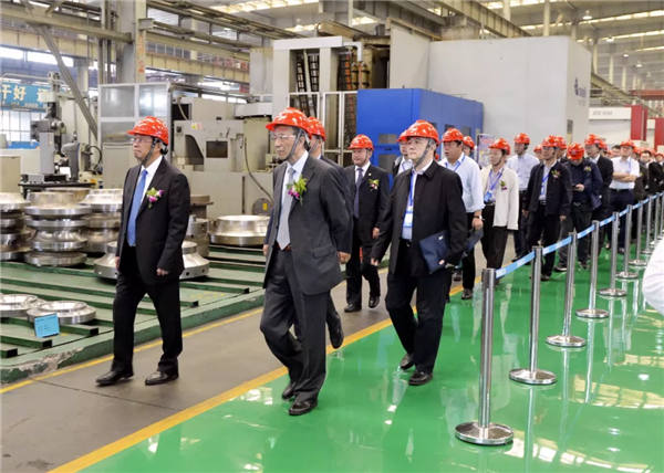 上午10:30,在集團領導的陪同下,參會嘉賓分別來到沈鼓廠區,參觀了轉子車間、定子車間、總裝車間、核電公司,饒有興趣地了解沈鼓技術、制造、服務等情況。整潔的生產現場、強大的裝備能力、繁忙的工作場景給嘉賓們留下深刻印象。