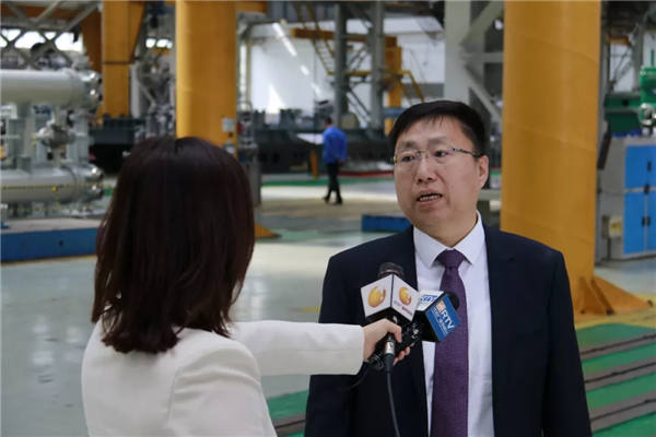 參觀結束后,在總裝車間隆重舉行第100臺天然氣長輸管線壓縮機,第150臺125噸大推力往復機出廠儀式,集團副總經理馬志宏主持儀式。