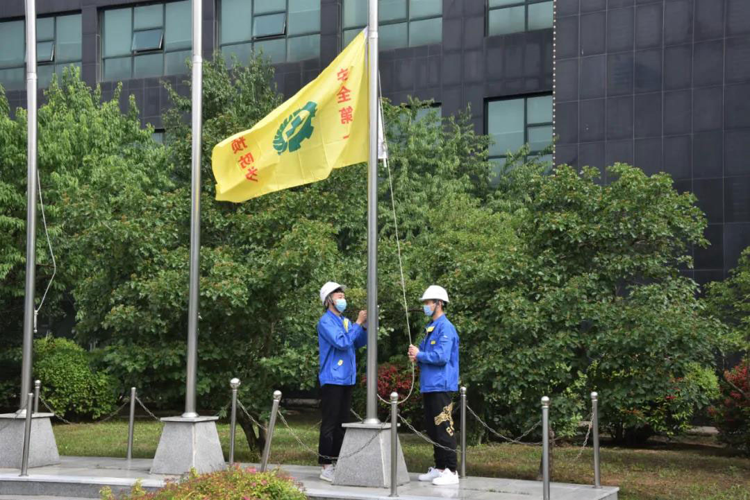 6月3日上午,主樓南側廣場,集團舉行”升安全旗儀式”暨2020年”安全生產月”活動啟動儀式。儀式由安技環保部副部長金輝主持,集團副總經理單瑋及全體安技員參加。今年的安全生產月主題是”消除事故隱患,筑牢安全防線”,旨在增加全員應急意識、提升公眾安全素質,有效防范和堅決遏制重大事故發生。