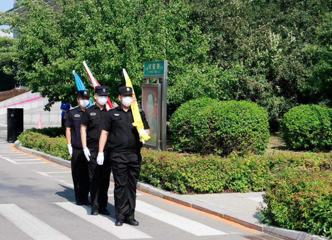 實業總公司安保事業部員工護送國旗入場。
