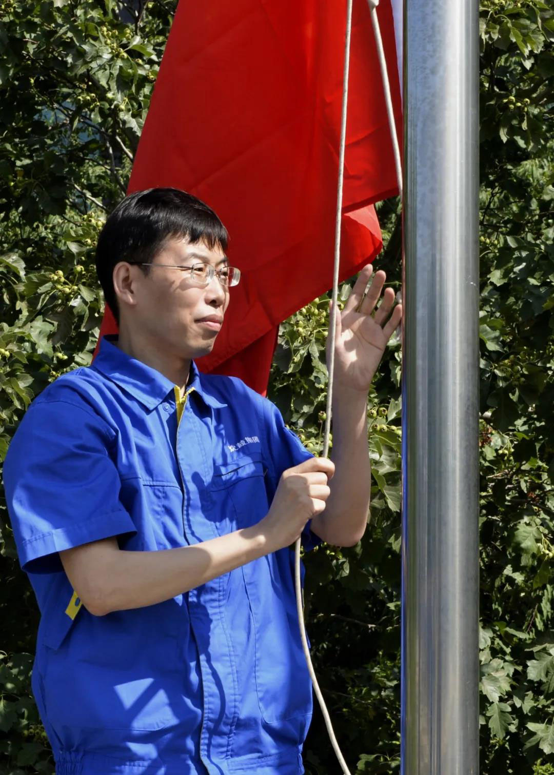 2019年市國資委優秀共產黨員、研究院氣動二室室主任張鵬剛擔任升旗手。